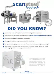 scansteel foodtech manufactures machinery and equipment as well as complete processing lines and solutions for the Global Food Processing Industry, Pet Food Industry and Processed Cheese Industry. Feel free to download our latest catalogues or please contact us if you have any questions.